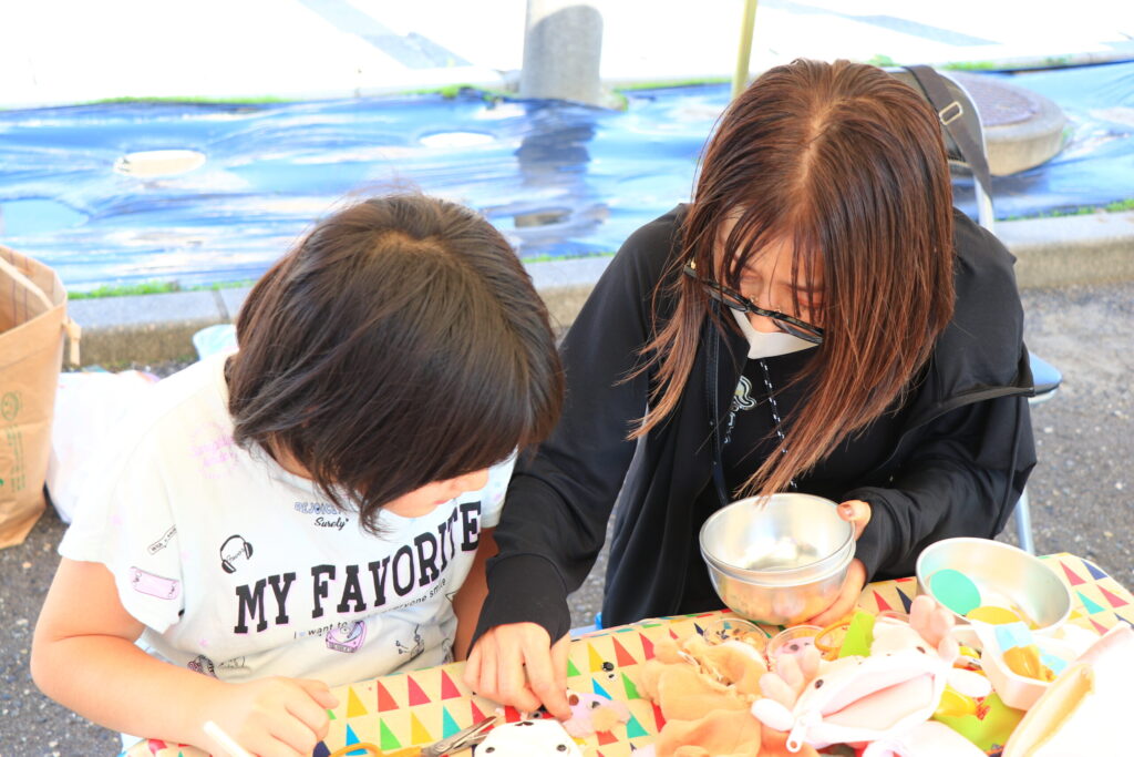 不要になったおもちゃを素材としたワークショップなどを開催し、その成果品の画像をもとに「町街(マチガイ)探し」という仕掛けで展示に繋げる。9月28日にまちセンこどもマルシェに出店し、子どもたちとのワークショップを行った(参加9名)ほか、10月30日にはcosudocoでワークショップを開催(参加13名)。