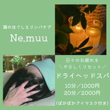 南区の自宅サロン、頭のほぐしとリンパケア Ne.muu です。頭も心もほどけるドライヘッドスパです。日々のお疲れをやさしくリセット。